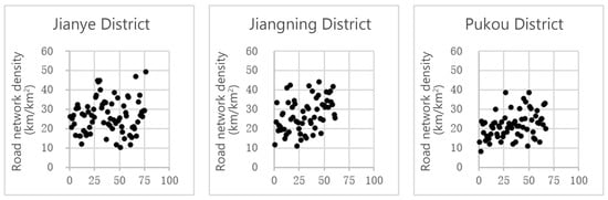 Table 5. Road network density of 204 residential areas in Jiangning, Jianye, and Pukou District.