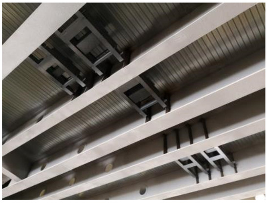 To further verify the effectiveness of TMDs in improving the vibration serviceability of the suspended floor, dynamic testing for the suspended floor with TMDs under pedestrian loads was conducted. The test setup, measuring point arrangement, and loading mode adopted in this section are the same as that adopted in Section 2. On-site complete installations of TMDs are illustrated in Figure 17.