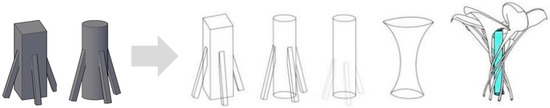 - Modify and beautify the best model and form the final target performance-oriented bionic design scheme with the considerations on the design principles of environmental integration, scientific feasibility, artistic aesthetics, and practical orientation.