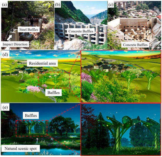 - Wang, D.; Li, Q.; Bi, Y.; He, S. Effects of new baffles system under the impact of rock avalanches. Eng. Geol. 2020, 264, 105261. [Google Scholar] [CrossRef]