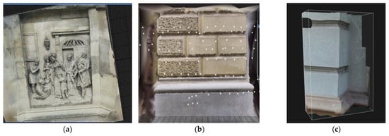 Comparing the results of the scanned models obtained during the first supervised workshop days and the models obtained by students during their individual work, one could easily observe a higher quality and accuracy of models and textures. The authors believe this is due to multiple iterations through a trial-and-error process, that led to better model selection, but the results simultaneously validated the proposed method of documenting architectural and art details through photogrammetry. These types of models, whether they be façade textures or details in stone, plaster, or carved wood, volumetric statues, or decorative objects, were easily accessible for students to observe and their overall structure was appropriate to the photogrammetry method, having the potential to be further applied in restoration projects, as described in the following section.