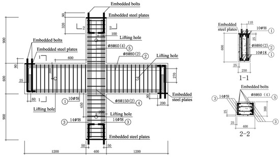 In this paper, the joint between the reverse bending points of adjacent beams and columns in a typical multi-storey multi-span reinforced concrete frame structure are selected as the object of study. To avoid dimensional effects as far as possible, based on the existing test conditions, seven full-scale concrete planar frame joints were designed according to GB50010-2010 Code for Design of Concrete Structures [27] and GB 50011-2010 Code for Seismic Design of Buildings [29].