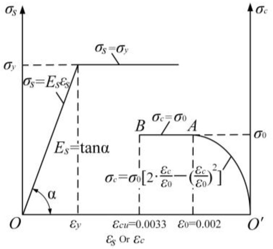 Typical stress–strain constitutive relationships of reinforcement and concrete.