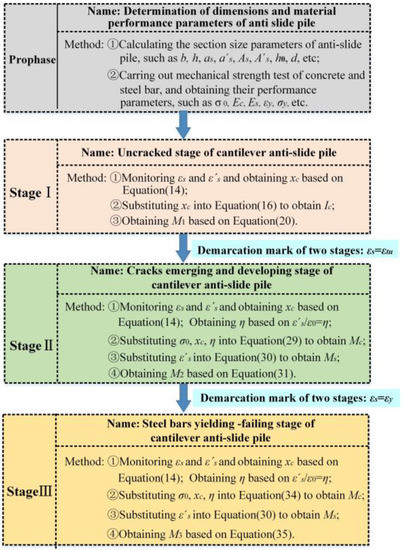 In summary, the specific calculation steps of internal force or bending moment in each stage during the whole process of stress and deformation of the cantilever anti-slide pile are represented in Figure 19.