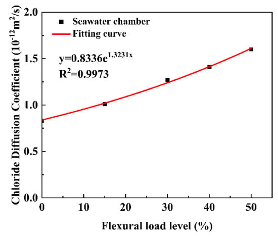 It can be seen in Equation (1) that the chloride diffusion coefficient has an exponential relationship with the flexural stress level.