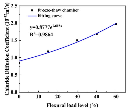 The coupling influence of flexural stress level and freeze–thaw on the chloride diffusion coefficient of concrete is shown in Figure 3.
