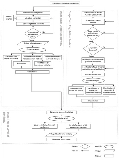 While there are many dimensions of research and regulation to compare, this paper focusses on mental health risk factors and mental health status assessment methods identified within these two bodies of knowledge. These two areas are the focus on this study because mental health risk factors are the most important indicators of mental health in the majority of research and legislations, and risk assessment is a critical part of the mental health management process [15,16,17].