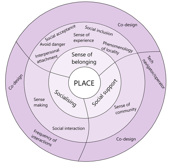 Whilst these attributes of social connectedness bring a level of standardisation to this fuzzy concept, they generally overlook the significance of place in influencing feelings of social connectedness. These ideas are supported in geographical disciplines where research on the geography of communication by Jansson and Falkheimer [35] requires that the spatial production of place needs an understanding through communication and mediation, since communication produces spaces and spaces produce communication. A study on real-world gaming in Pokemon GO exhibited these relations by highlighting that a sense of social connectedness was produced as players developed a sense of belonging that was linked to a sense of place [36]. This is significant because it recognises the link between social connectedness and place as integral. By introducing the theory of placemaking, these ideas are developed in the following section.