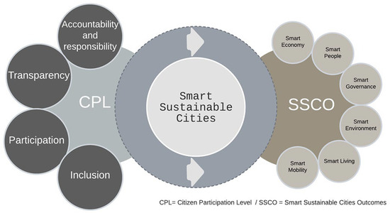 In addition, CPL can positively affect SSCO. According to Lim, Malek, Hussain, and Tahir [24], CP is the engine for smart cities for three reasons: 1—citizens are the source of data that decision makers need to support their decision; 2—they are the beneficiaries who appreciate the outcomes of smart cities; and 3—they are responsible, hence, their contributions will be genuine. Researchers such as Batty, Axhausen, Giannotti, Pozdnoukhov, Bazzani, Wachowicz, Ouzounis and Portugali [25], Harrison and Donnelly [26], Lazaroiu and Roscia [27], and Odendaal [28] argued that many studies on smart cities have deeply focused on technology part and did not emphasise the important roles of CP. Willems et al. (2017) applied Arnstein’s model to 26 smart London projects which focused on the primary stakeholders (direct or indirect involvement) and their various types of engagement. The result shows that placation will indirectly allow CP to occur to a great extent in smart city project, while manipulation, therapy, consultation, and the informing levels are more directly focused on the individual citizen. Castelnovo, Misuraca, and Savoldelli [29] also applied Arnstein’s ladder to examine the basis for the discussion of the importance of CP in the initiatives of smart cities; it showed an increase in the correlation between the levels of CP and the improvement of the smart cities’ outcomes. Cardullo and Kitchin [30] argued that any smart city initiatives which are technological-centric instead of citizen-centric emerge with difficulty in engaging citizens in the development of smart cities. They outlined four active roles of CP in any smart sustainable city initiatives, which are (1) the proposer (to report or advise), (2) the co-creator (to negotiate or produce), (3) the decision-maker (to decide), and (4) the leader (to create).