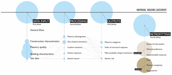 - Retrofitting: this phase is currently not directly linked to the seismic assessment of a building, but a structure intervention strategy can be suggested for enhancing seismic resistance of a specific building.