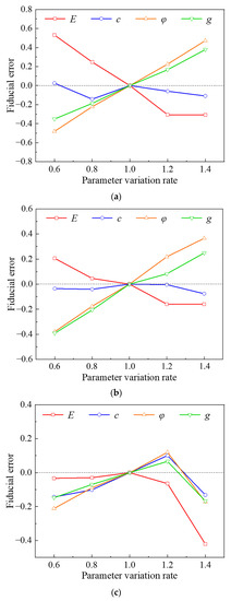 Displacement limit value error curve. (a) L1; (b) H1; (c) H2.