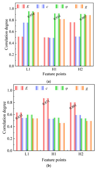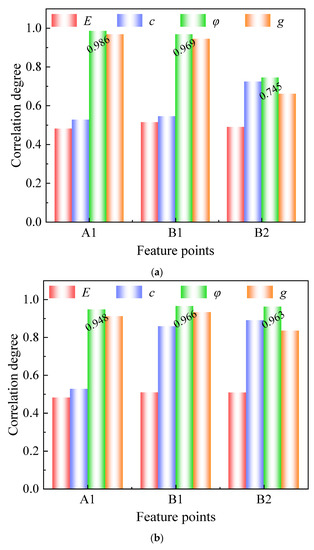 Soil feature point relational degree histogram. (a) Peak acceleration; (b) Lateral displacement extremes.