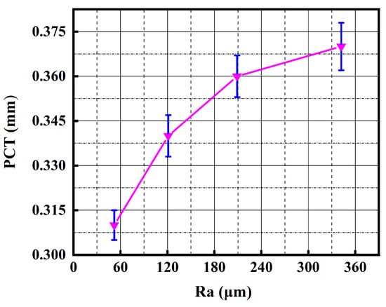Change law of PCT under the action of aggregate roughness index Ra. Error bars are standard deviations based on 4 replicates.
