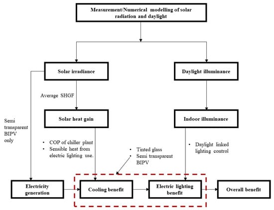 For the last objective, the energy implications of the solar irradiance and illuminance data for semi-transparent BIPV were determined. The assessment was conducted in terms of day-lighting, cooling and electricity generation in a generic air-conditioned office using the flow chart in Figure 2. The ambient temperature (Ta) and wind data used for the analysis were obtained from the Hong Kong Observatory.