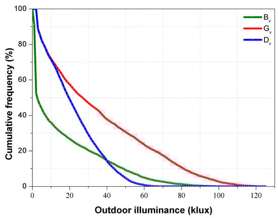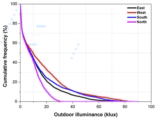 Cumulative frequency of horizontal outdoor illuminance.