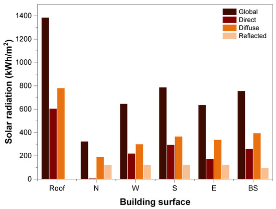 3.2. Results of Analysis of Solar Radiation on Building Skins