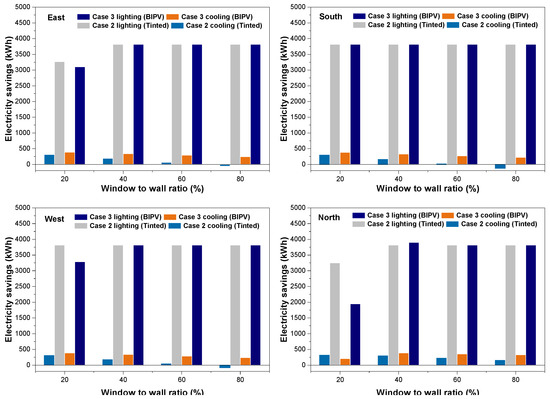 Studies show that the building sector contributes 40% of the world’s total energy consumption and accounts for 30% of the total CO2 emissions [1,2]. To improve building energy efficiency, energy consumption can be reduced, and renewable energy resources can be increased [3]. The balance between the energy consumption in a building and the energy produced by its renewable energy systems is referred to as the net-zero energy [4]. Over time, interest in net-zero-energy buildings (NZEBs) and energy-efficient designs [5] has grown. However, even if various energy-efficient measures are utilized in a building, energy is still required to power the building. Thus, in NZEBs, renewable energy technologies, such as photovoltaic (PV) panels, are encouraged [6]. Photovoltaic panels directly convert solar energy into electricity [7]. A variation of PV panels in the form of semi-transparent building-integrated photovoltaic (BIPV) panels can replace a window or roof, or act as a building skin (BS) for electricity generation and reduce lighting energy expenditure and cooling requirements [8].