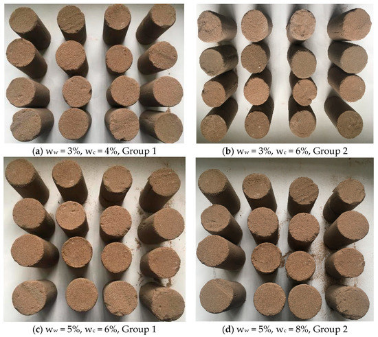 - According to the water content and cement contents shown in Table 1, a certain amount of water and Portland cement were added to the air-dried aeolian sand. Then we stirred the aeolian sand evenly and sealed it with plastic wrap for one day.
