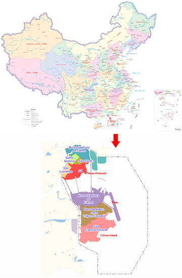 - Zhu, R.; Wu, Y. Macao Front Land; Hong Kong Sanlian Bookstore: Hong Kong, China, 2014. [Google Scholar]