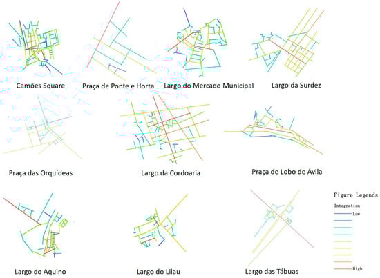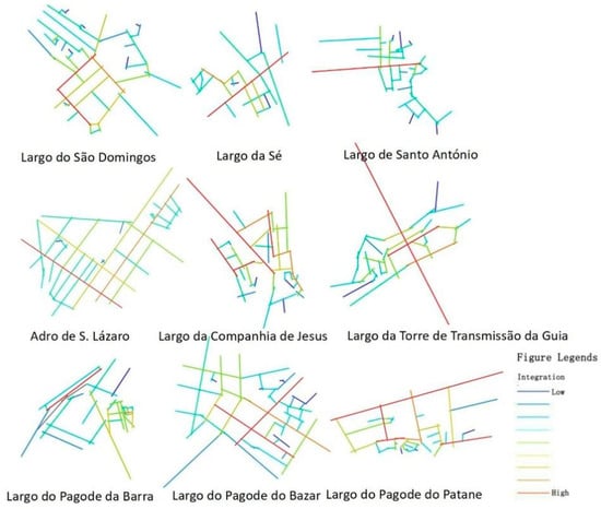 This study illustrates the important historical and cultural values and the distribution classifications of Macau’s Largo, and this study mainly applied Depthmap software to calculate the metrics of space syntax for the Largos of Macau Peninsula. Additionally, the study combined the space syntax theory and relevant parameters to sort out the coupling relationship between the Largos and the Macau Peninsula, as well as the spatial characteristics of the Largos, from the spatial logic level. The main conclusions are as follows.