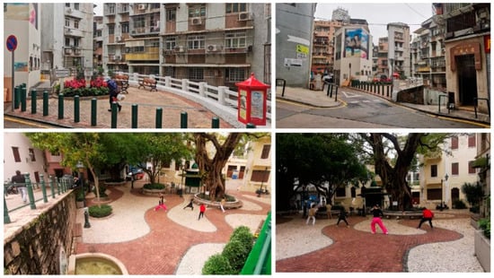 - Zhu, R. Renovation and Reuse of public Space in urban historical Center—Experience of Reconstruction of Square in Macao historical urban Area. Decoration 2007, 3, 16–17. (In Chinese) [Google Scholar]