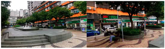 Largos with high integration and high choice are Largo da Cordoaria, Largo do Mercado Municipal and Largo da Surdez. Considering Largo da Cordoaria as an example, the fishing industry in Macau was once prosperous, and local residents were well known for rope braiding. Later, the place evolved into the current community-related Largo. The synergy of Largo da Cordoaria is 0.957, implying that it exhibits a high degree of correlation with the spatial structure of the entire city, with prominent identification features reflecting the common life of Macau. High integration and high choice indicate that the Largos exhibit a strong potential for being a destination in the system with active traversing traffic. Furthermore, site investigation indicates that Largo da Cordoaria is located in the downtown area and is connected to urban roads. Low- and medium-level businesses inside Largo da Cordoaria, such as electrical repair shops, grocery stores and restaurants, serve community residents. Public facilities such as neighborhood centers and basketball courts are also located here. Finally, the location contains public buildings such as Cinema Alegria and O Templo de Lin Kai. This indicates that Largos with high integration and choices are lively places (Figure 12).