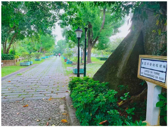 Largos with low integration and low choice—examples of such Largos include Largo do Pagode da Barra and Largo da Torre de Transmissão da Guia. Largo do Pagode da Barraa is adjacent to the motorway, which accounts for its low walking accessibility, poor synergy with the city and only having a few pedestrians crossing the space. Although resting facilities have been established, they are only used by a small number of nearby residents during the nonholiday period, and overall, such Largos are isolated from the city (Figure 15). Largo da Torre de Transmissão da Guia is a “ religion-related “ Largo. The Largo is located in Guia Hill, a famous scenic spot on the Macau Peninsula, with no residential community around it and tourists are the main user group. It is also isolated from the city (Figure 18).