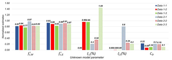 - Ramancha, M.; Astroza, R.; Madarshahian, R.; Conte, J. Bayesian updating and identifiability assessment of nonlinear finite element models. Mech. Syst. Signal Process. 2022, 167, 108517. [Google Scholar] [CrossRef]