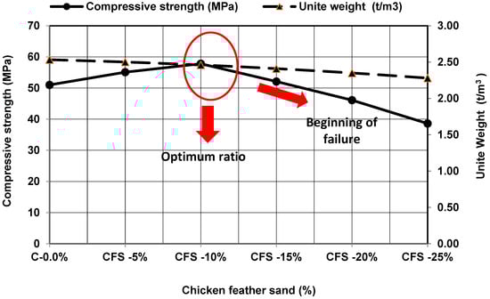 - The compressive strength and unit weight relationship is proportional, which means that the greater the compressive strength, the lower the weight at the replacement ratio CFS-10%, and the lower the compressive strength, the lower the weight after the replacement ratio CFS-10%.