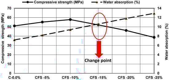 - As water absorption increases, CFS replacement also increases; water absorption was higher in the CFS-25% mixture.