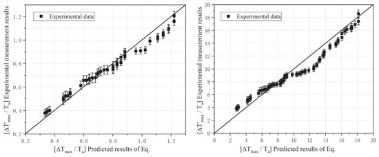 Comparison between the experimental results of maximum temperature beneath tunnel ceiling for double fire sources and equations [56].