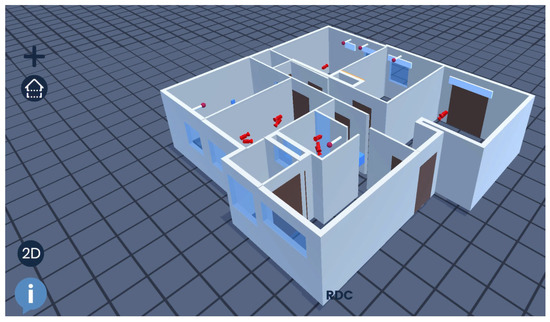 The image on the 3D model of the sample apartment with all divisions, objects, photos, and annotations (screen shot from BIMeo software) [93].