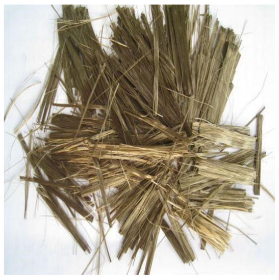 The basic properties and composition of the basalt fibers are shown in Table 2 and Table 3. Figure 4 shows the appearance of the basalt fibers.