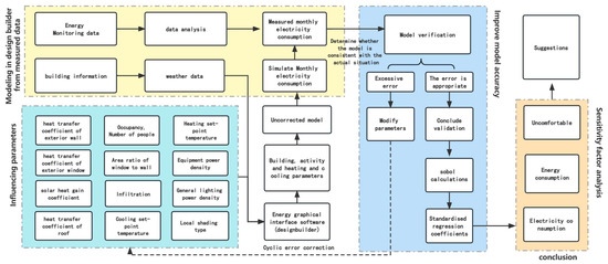 Step 3: The simulated data were subjected to a sensitivity analysis, which is a method used to identify the relative importance of the input parameters; it is defined as “the study of how changes in the output of a model (numerical or otherwise) are qualitatively or quantitatively designated as different sources of change”. The purpose of a sensitivity analysis is to determine the links between the changes in the independent input parameters and the changes in the independent output variables. Sensitivity coefficients obtained through a sensitivity analysis can enhance one’s understanding of a model’s performance and its response to input changes, helping them to identify possible changes in order to improve the building’s performance. It can also identify important and unimportant parameters in the model, allowing them to customize the input variables and constraints to solve the optimization problems. Based on the results of the sensitivity analysis, corresponding measures were proposed. The framework of the study in this paper is shown in Figure 1.