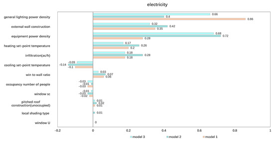 Since different influencing factors tend to affect one another, global sensitivity analysis can effectively reduce the error [33]. The current sensitivity analysis focuses on global sensitivity analysis, which is divided into four methods: regression, screen-based, variance-based [27] and metamodel sensitivity analyses [34]. For the regression methods, Latin hypercube sampling is suitable for a wide range of use cases due to its efficient layering nature. Another commonly used technique in the regression methods is the stepwise method, in which all of the R2 values obtained from the stepwise multiple regression are judged, and the data represent the proportion of energy consumption that can be explained by the influencing factors of the independent variable, such as the R2 value being equal to 0.95, which means that 95% of the change in energy consumption can be explained by the changes in the participating influencing factors [35].