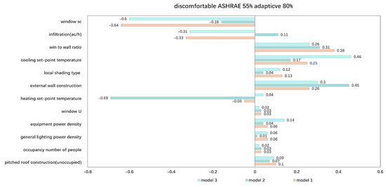 The evaluation coefficient used in this study was the standardized regression coefficient (SRC), which is usually used to answer the question of which independent variables have a greater influence on the dependent variable in the multiple regression analysis [23], where the variables have different units of measurement, which can also be considered as a general measure of the size of the effect, quantifying the magnitude of the effect of one variable on another variable. However, the standardized regression coefficients of each parameter obtained for the same building in different environments are almost always different. Therefore, it is not possible to extrapolate the coefficients of the parameters of the buildings in other cases.