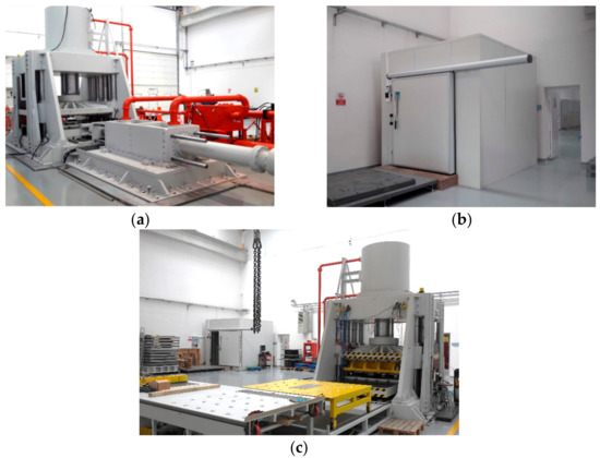 The LRB presented in Figure 1 was tested at the ESQUAKE Seismic Isolator Test Laboratory of Eskişehir Technical University. The test setup enables the application of force and displacement-controlled dynamic excitations to test specimens in both horizontal and vertical directions. Thus, the vertical force applied to the specimen can be kept constant during the motion in the horizontal direction. The maximum loading capacities are 2.000 kN and 20.000 kN in the horizontal and vertical directions, respectively. In the horizontal direction, the maximum displacement capacity is equal to ±600 mm (See Figure 2a for test setup). The environmental chamber of ESQUAKE shown in Figure 2b facilitates the exposure of the LRB to low temperatures. The thermal chamber and test setup are placed next to each other, as seen in Figure 2c. The dimensions of the thermal room are 3 × 3 × 3 m, and it provides a minimum and maximum temperature of −40 and +50 °C, respectively.