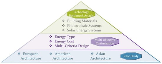 Scholars have studied the development status or problems of zero-energy buildings in different regions []. Western countries developed zero-energy buildings earlier. Some scholars evaluated the implementation progress of an NZEB in Europe and compared the definitions of EU-NZEB and US-NZEB []. TRNSYS (Transient System Simulation Program) dynamic energy simulation software and GenOpt general optimization program were used to find the optimal level of cost to reduce building energy consumption for single buildings in France []. In contrast, the development of zero-energy buildings in Asia is relatively late and there are more problems. In Malaysia, there are barriers in cost, skill and technology and government policy in the development of zero-energy buildings [].