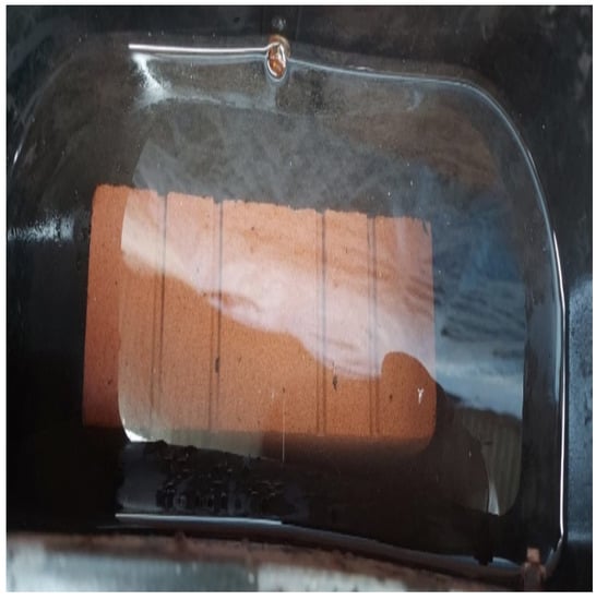 The efflorescence test was conducted as per IS 3495:2019 (part 3) [45]. There were no soluble deposits in the bricks. The bricks resembled transparent specimens which are free from efflorescence.