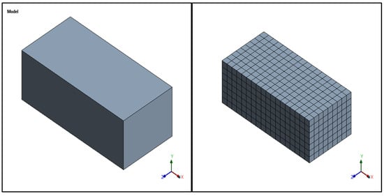 A rectangular SRMB, 228 × 108 × 80 mm in size, was used as a model in the ANSYS workbench. For the finite element model, the element type used was SOLID 185 with an element size of 10 mm. The shape of the element mesh used was hexahedron which is suitable for computational work. The material chosen for the SRMB analysis was isotropic elasticity. The brick was analysed in the vertical and horizontal axes, employing experimental and validated data using finite element method ANSYS.