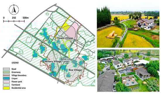 - Dayi Media Center. The Linpan Landscape in Dayi Redefines the Countryside of Chengdu’s Park City Goal. Available online: http://nynct.sc.gov.cn/nynct/c100632/2019/11/15/f2894ce8a3184766b9f571551c1b5e20.shtml (accessed on 20 January 2023).