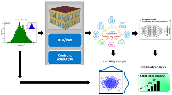 The uncertainty and sensitivity analyses were conducted with respect to sensor errors and energy/thermal comfort variables. The uncertainty analysis showed that the sensor errors and energy consumptions have a nonlinear relationship. The energy consumptions have wide distributions compared with the baseline model with sensor error uncertainties:
