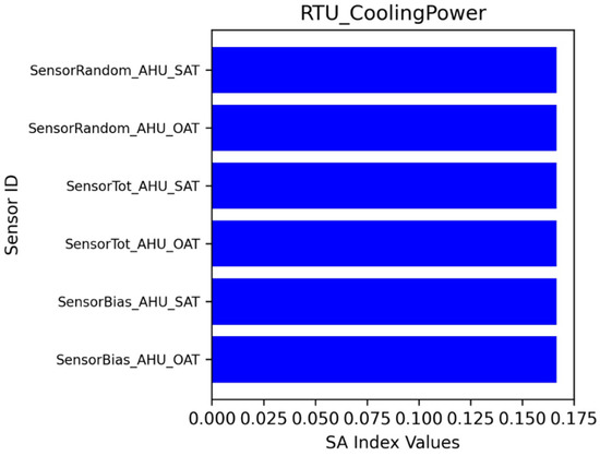 The AHU power consumption was studied. Figure 17 illustrates the sensitivity index for cooling power. The cooling power is sensitive to the random errors of the SAT and OAT sensors, total errors of the SAT and OAT sensors, and bias errors of the SAT and OAT sensors. They have equal impacts on cooling power demands.