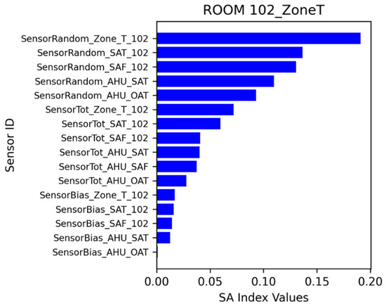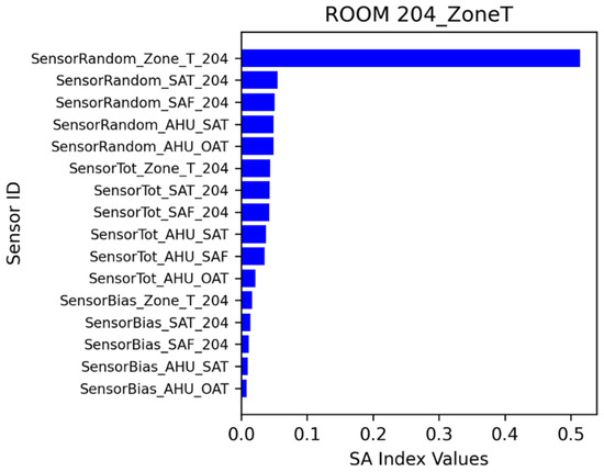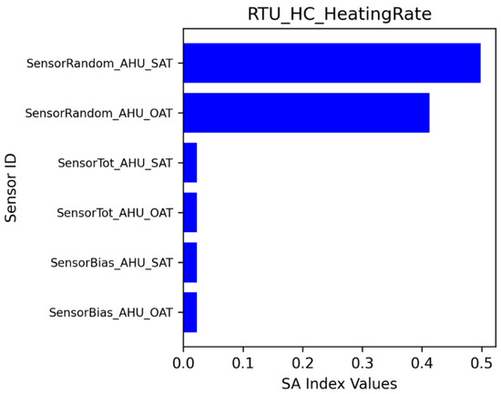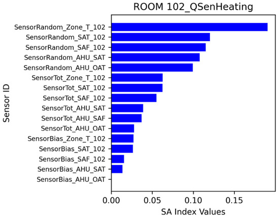 The sensitivity analysis identified which sensor errors have stronger impacts on energy consumption and thermal comfort. A ranking of sensor error impacts was obtained using sensitivity analysis index values. Sensitivity analysis can be performed in various ways, including through local and global approaches [28,29]. Different methods have certain strengths and drawbacks. As a preliminary exploration, this project applied the Sobol method [28] to calculate the sensitivity index.