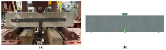 Experimental program: (a) basic sample for 3-point bending test; (b) numerical model.