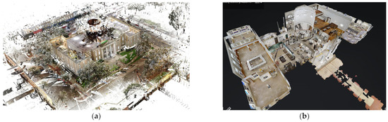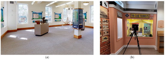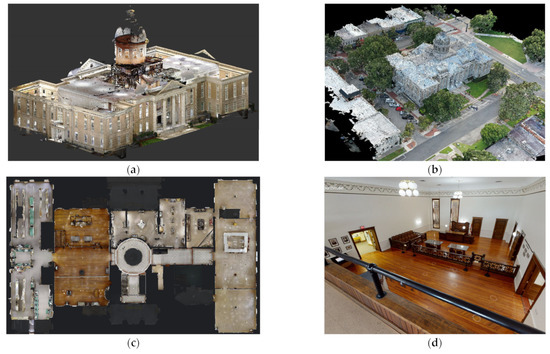 Three-hundred-and-sixty-degree photography (also referred to as virtual tours) provides modelers the ability to verify existing conditions with point cloud data (Figure 4). This platform can be further used for convenient previews of cultural heritage and allows the public to “visit” the site, regardless of location and geographic boundaries. Within the context of public education and communicative purposes, this technology is widely used to present the visualization of cultural heritage [52]. Culturally sensitive artifacts or sensitive areas can be displayed and provide viewers with a unique vantage point that is otherwise inaccessible.