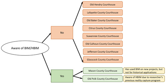 There are several limitations to the data contained within this study. The scope of this research did not explore the specific data management practices, nor seek to review software identified during interviews to determine how existing data management practices can be improved. Similarly, this research does not address the implementation of new HBIM technologies, nor does it seek to develop HBIM programming to address the shortcomings of BIM for built heritage. The data was limited to a subset of built heritage stakeholders representing county courthouses of an explicit architectural style and time period in the southeastern United States. Also, the 26 case studies included in this work may not represent all of the published HBIM case studies.