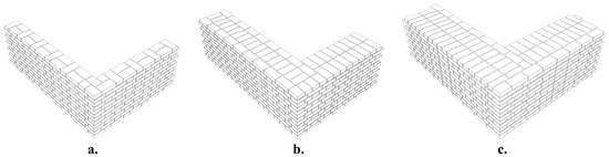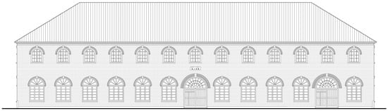 The façades of the LMF have plain decoration with main modeling elements, including gray brick and a tile roof, arched doors, and windows. The height of the roof is approximately one-half of that of the wall, which constitutes a harmonious proportion of the building. The walls were constructed with local gray bricks. The masonry method combined the traditional Chinese header–stretcher bond with the British bond of alternating header and stretcher courses. Laying one course of stretchers and two courses of headers brings into play the pulling performance of headers to increase the stability of the walls and leaves neatly arranged perpends that make the building façade elegant [41] (Figure 11).