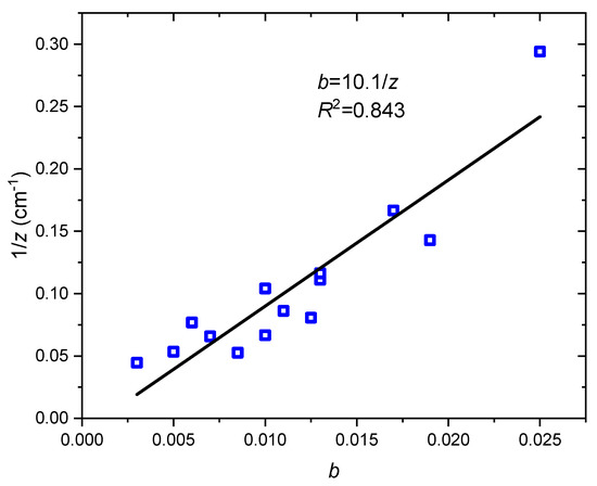 From the expressions of Equations (1) and (18), b and k1 have similar effects. Therefore, k1 is assumed to be linear with 1/z, which can be expressed as