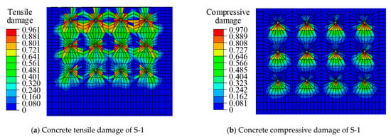 21] conducted pull-out tests on group studs and found that the average ultimate pull-out capacity of the group studs was discounted to a certain extent compared to the ultimate pull-out capacity of individual studs. The conclusion from the above study is that the mechanical performance of a stud in group studs is reduced compared with the uniform arrangement. In addition, the group studs effect is not only influenced by the number of studs, rows, and concrete strength but is also related to the loading method, loading process, loading magnitude, stud stressing state, and shear connection degree.